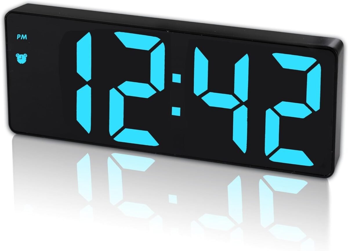 Digital Alarm Clock for Bedroom,Mirror Surface LED Electronic Clocks,Adjustable Brightness, Snooze Model,Voice Control,12/24H Display,Alarm Clock for Kids,Office,Table,Nightstand-Blue01