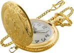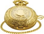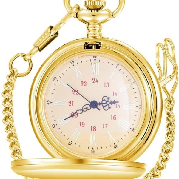 - Gold Shield Design: This gold shield Arabic numerals scale men’s quartz pocket watch with chain is perfect for everyday wear.