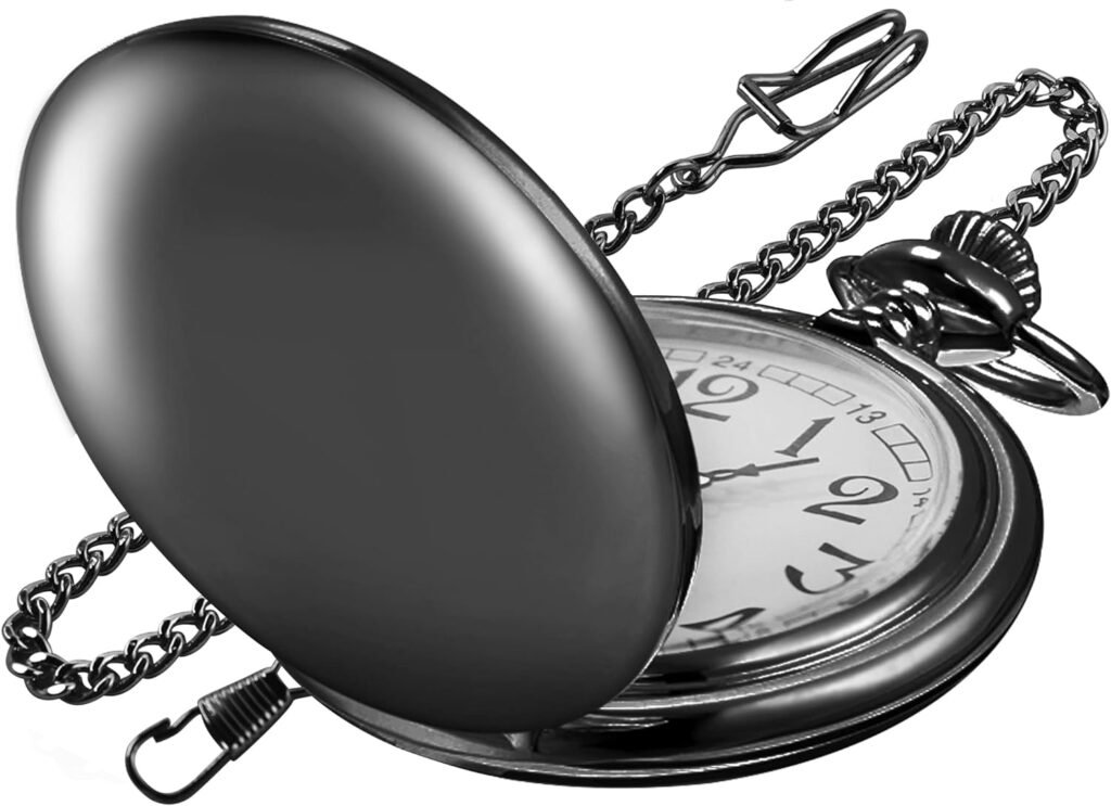 - Detachable chain: the package includes a pocket watch and a gold necklace chain with hook; The removable chain is easy to assemble and disassemble Way to open: the quartz pocket watch is simply designed; You can press the crown at the top of watch, and the front plate will be opened Setting time: pull the crown away from the watch base and turn the crown clockwise until reaching the exact time
