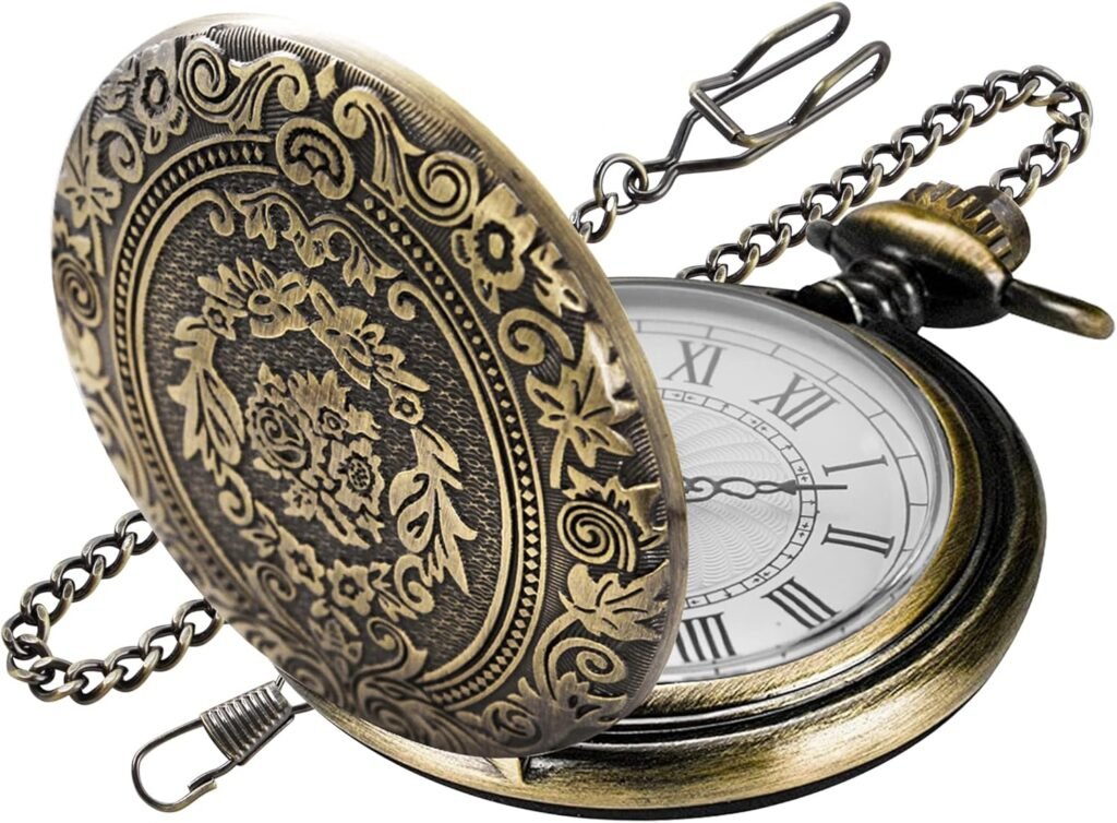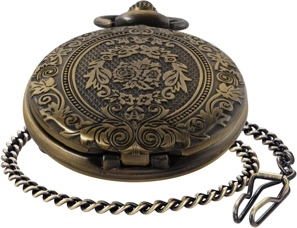 - Due to poor shooting, the pocket watch itself is more refined than the picture, the perfect pocket watch! Classic pocket watch: roman numerals scale, very special; Heavily engraved front and back with exquisite patterns, vintage appearance design, really good as a fashion accessory