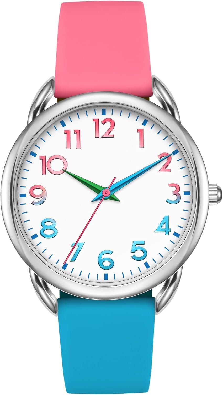 - Easy-to-Read: The white dial with pink and blue arabic numbers ensures that you can quickly and effortlessly read the time at a glance, making this watch both fashionable and functional.